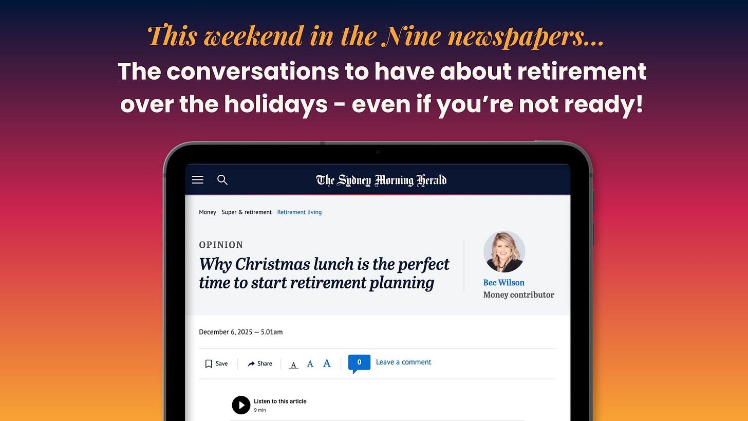 SMH/TheAge: Conversations to have about retirement over the Christmas season