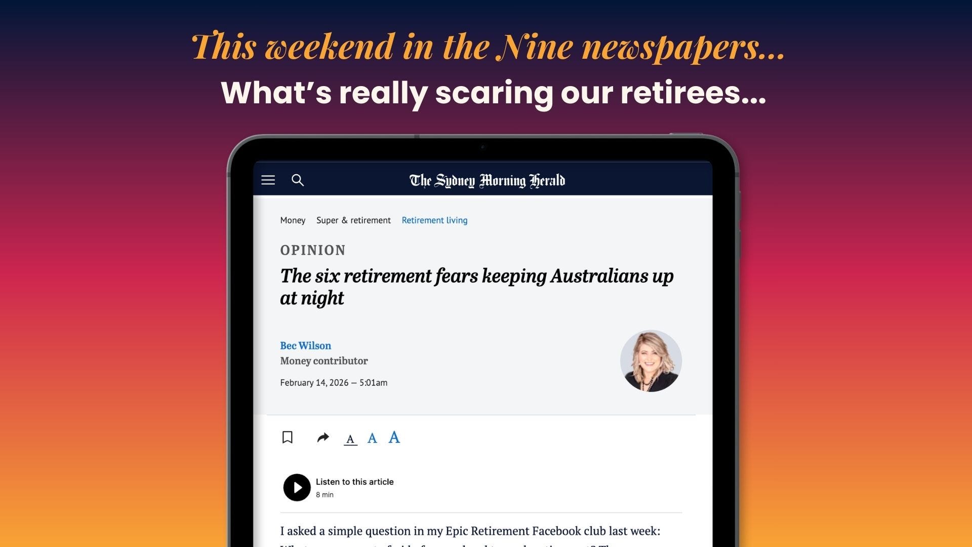 And in this week's Sydney Morning Herald: "The six retirement fears keeping Australians up at night"