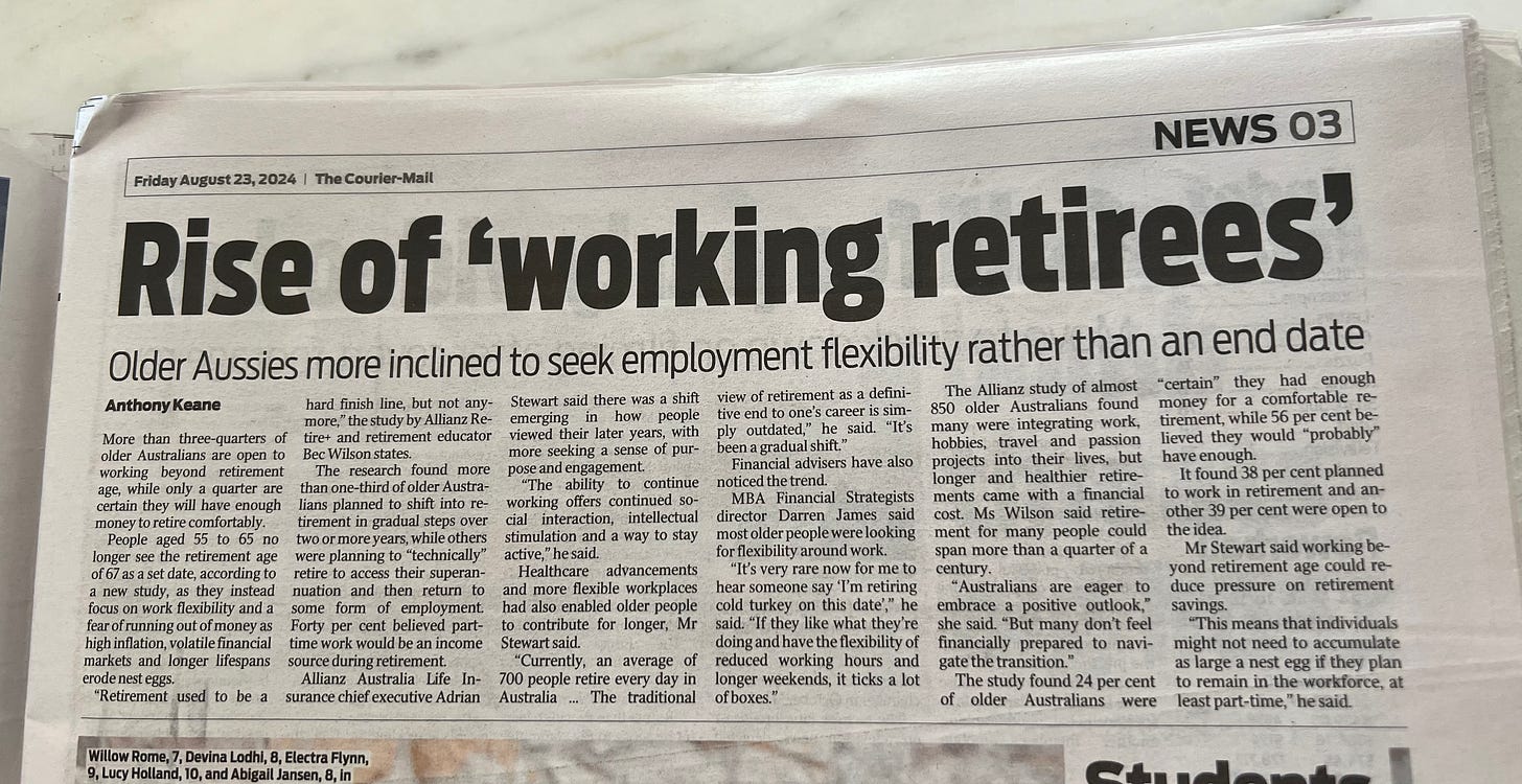 Some of the insights from the report have been featured in the nation’s newspapers this week. It started a big discussion on this insight that many of you want to work AFTER you retire! Including this piece in The Australian “Why working in retirement is set to boom’, and articles in the Daily Telegraph, The Courier Mail (pictured), NT News and plenty of others.
