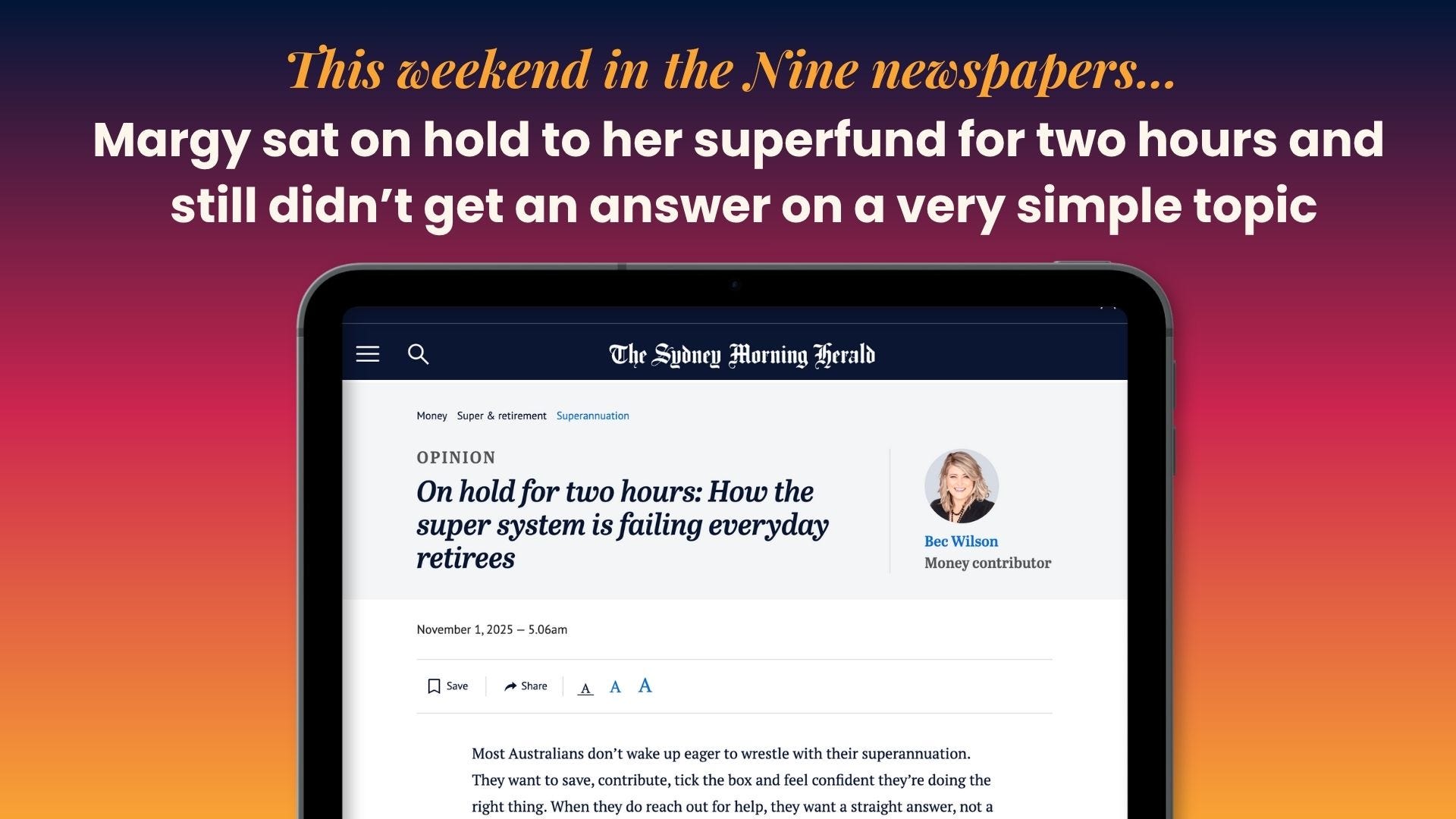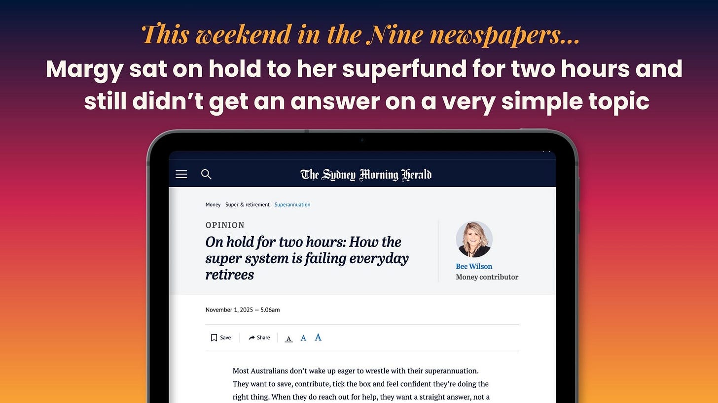 SMH/TheAge: On hold for two hours: How the super system is failing everyday retirees