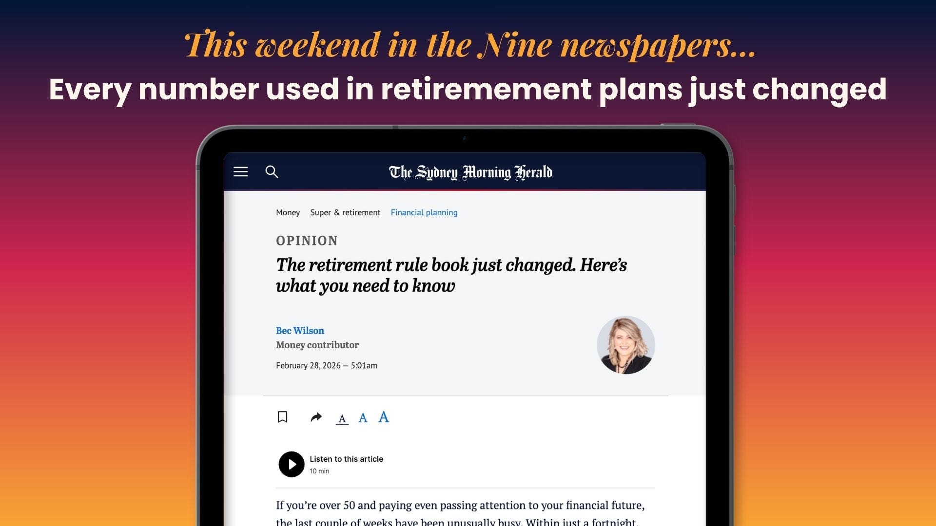 And in this weekend's Nine newspapers: "The retirement rule book just changed. Here’s what you need to know"
