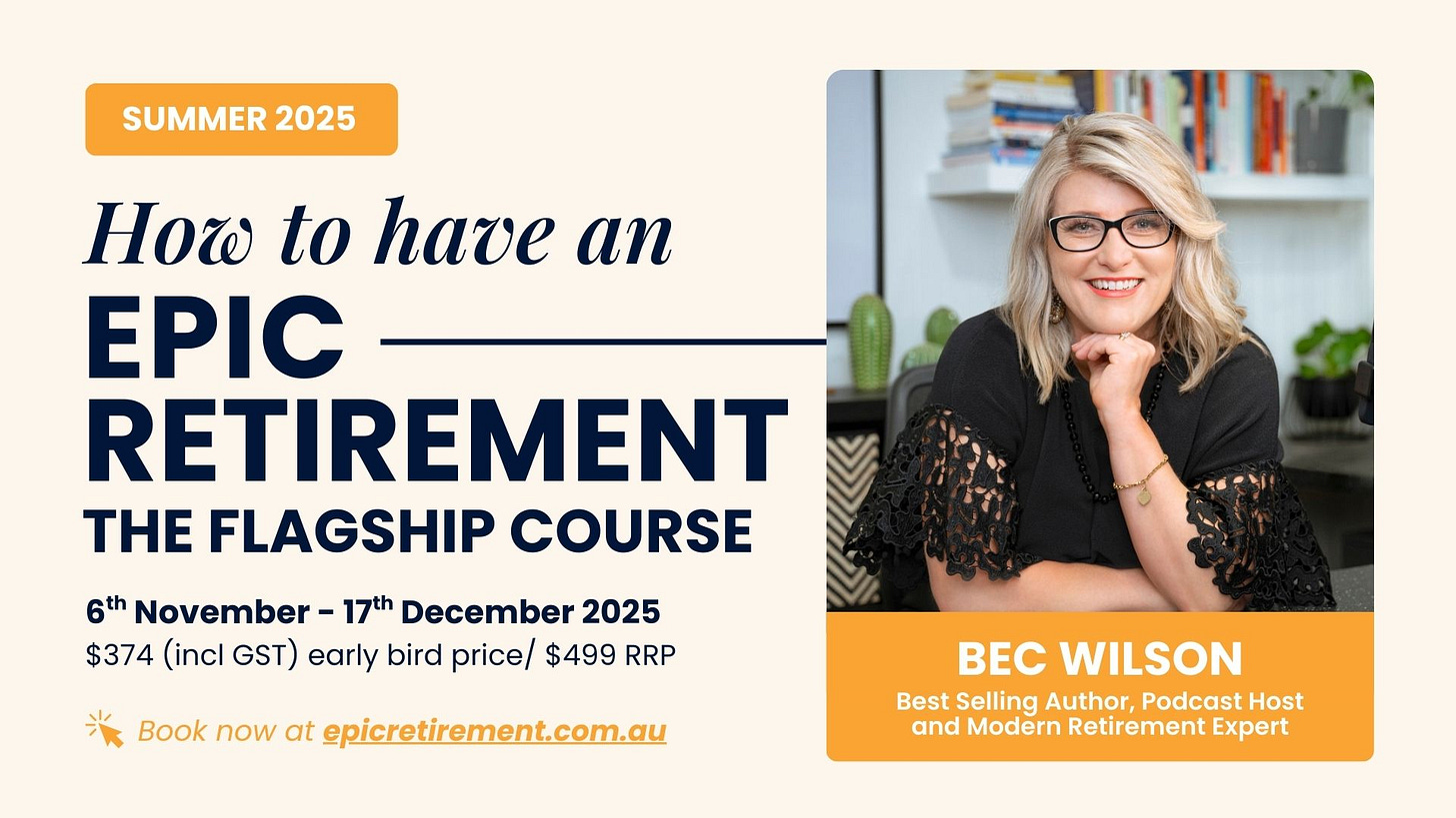 This week we’ve launched our brand-new How to Have an Epic Retirement Flagship Course, starting 6 November. It’s been built around the new updated edition of the book coming out November 29—and as a bonus, course participants will be among the very first to get their copy of the new book before it’s released - in their welcome packs!