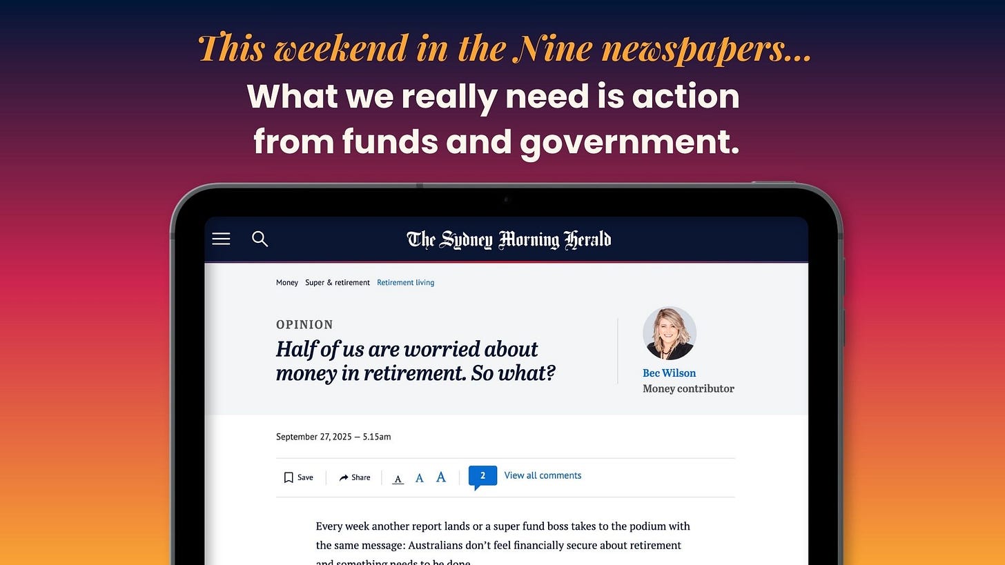 SMH/TheAge: Half of us are worried about money in retirement. So what?