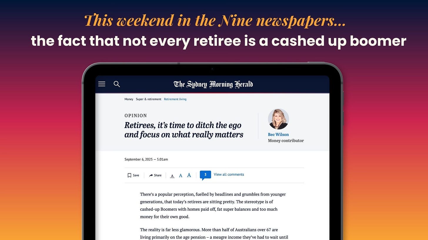 And, in this weekend's newspapers "Retirees, it’s time to ditch the ego and focus on what really matters"