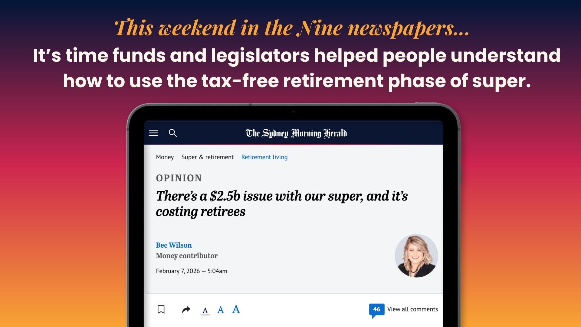 And, in the weekend Nine Newspapers: There’s a $2.5b issue with our super, and it’s costing retirees