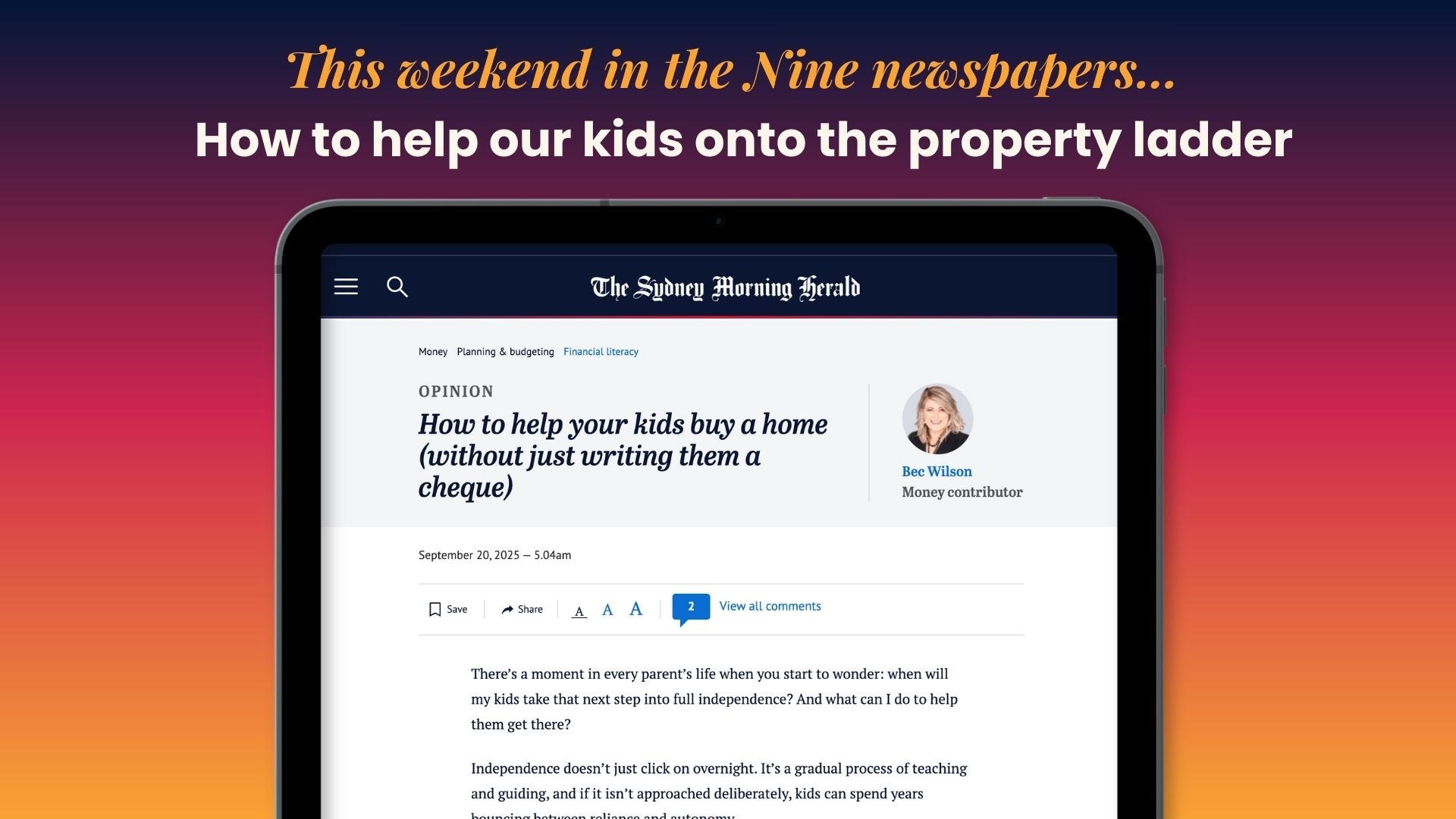 And in today's newspapers "How to help your kids buy a home (without just writing them a cheque)"