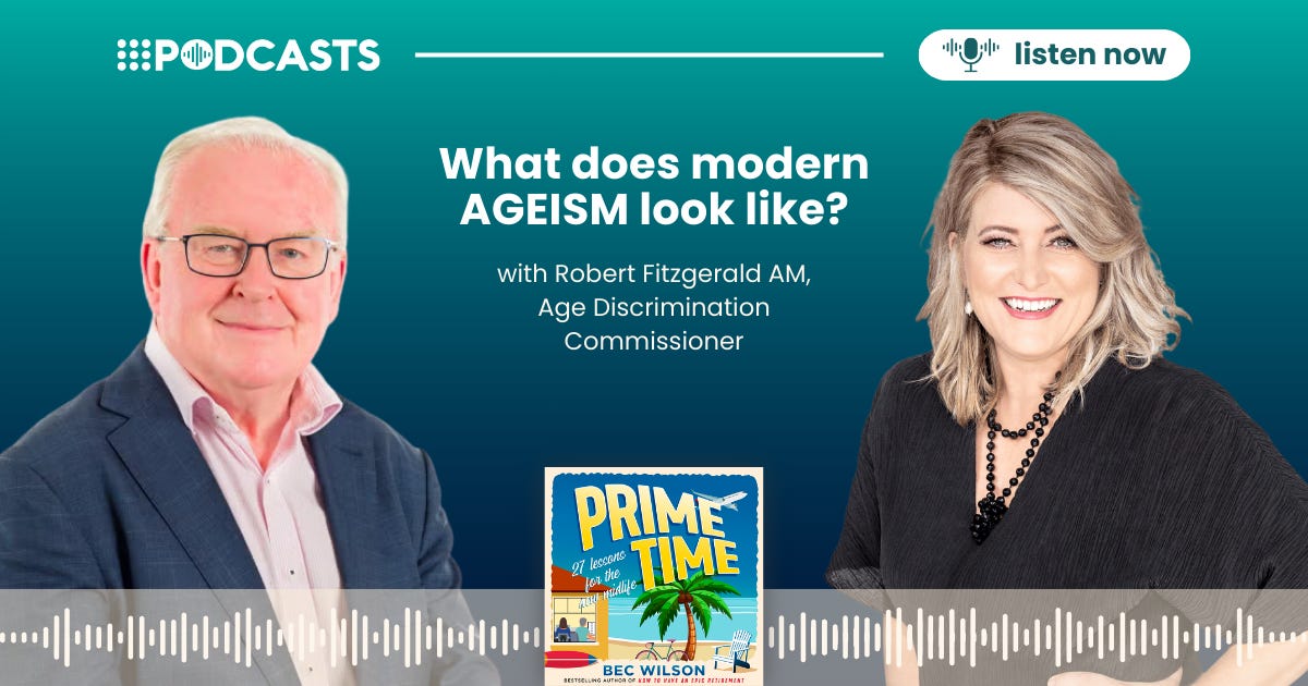 I recorded a super-interesting podcast with Australia's Age Discrimination Commissioner, Robert Fitzgerald AM on modern ageism and how it’s affecting many over-50s right now - and what we can do about it. Have a listen below.