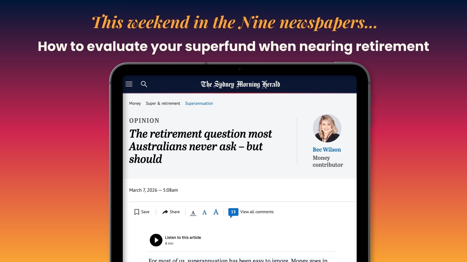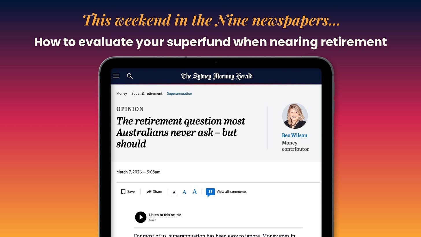 And in this weekend's Nine newspapers: The retirement question most Australians never ask – but should