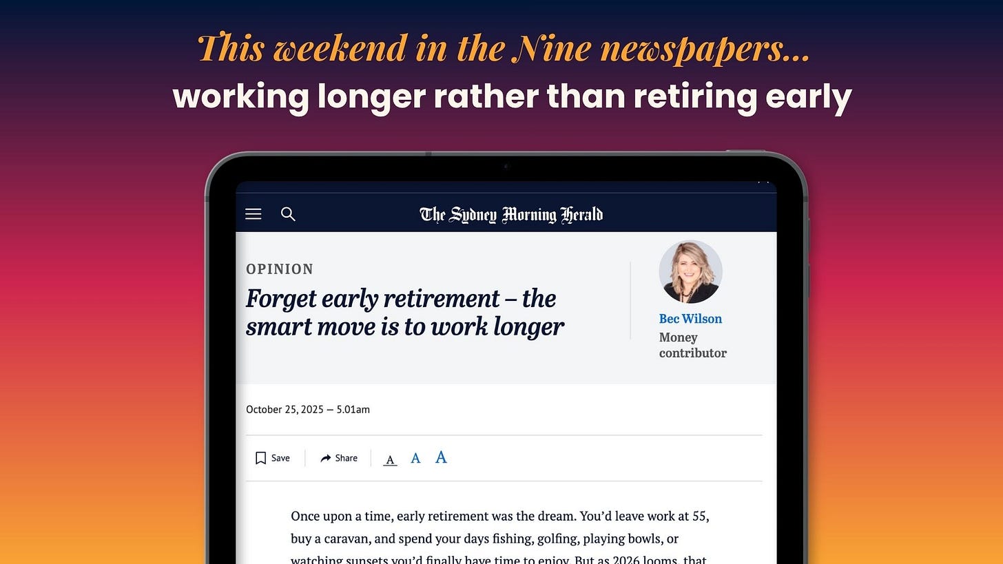 SMH/TheAge: Forget early retirement – the smart move is to work longer